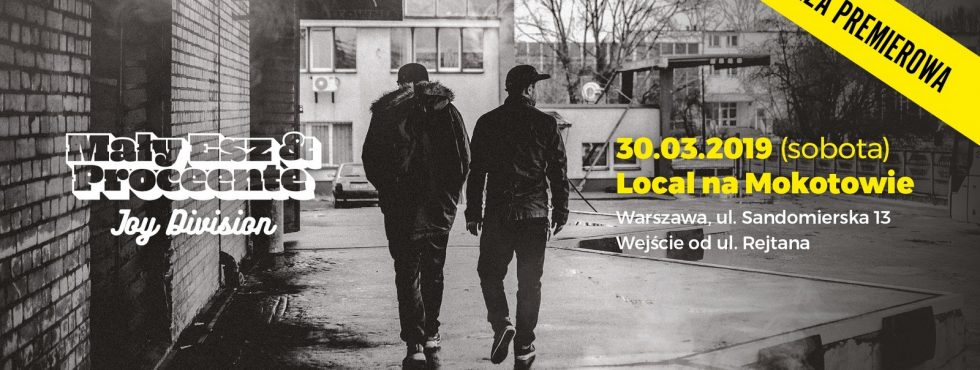 30 marca Mały Esz & Proceente świętują premierę wspólnego albumu „Joy Division”. Z tej okazji w sobotni wieczór zapraszamy na imprezę premierową w LOCALU na Mokotowie.